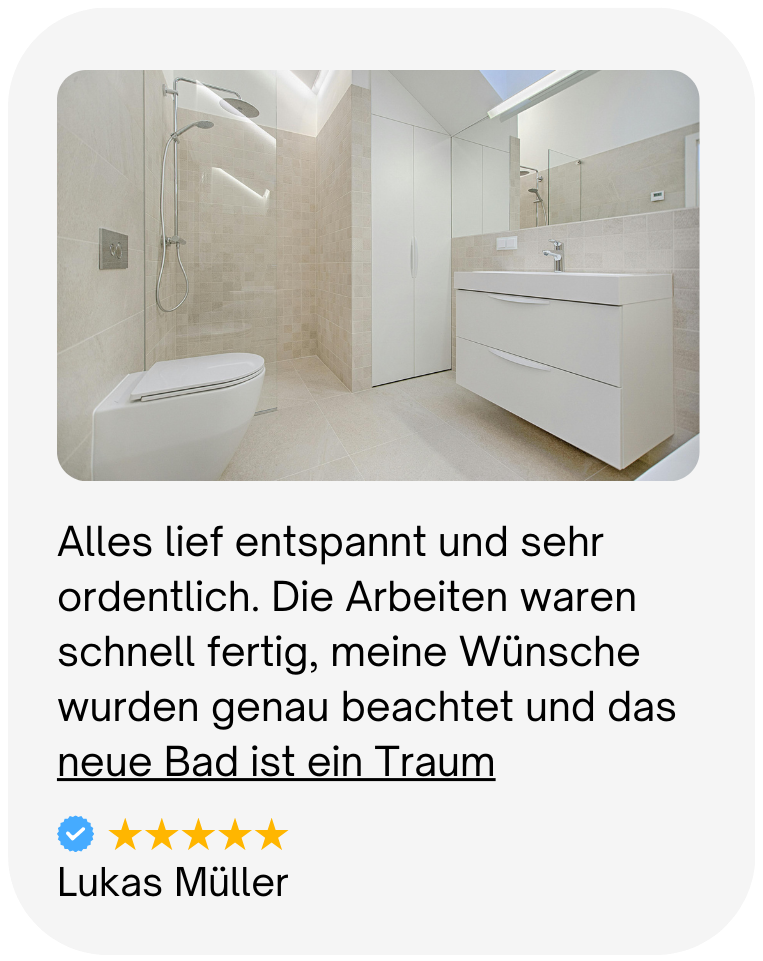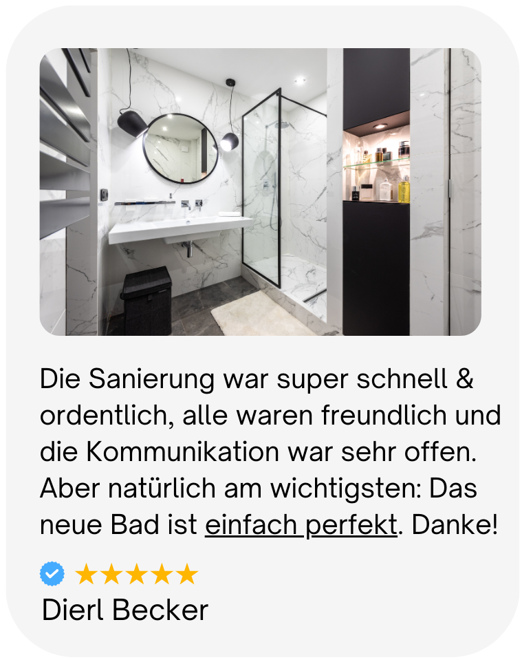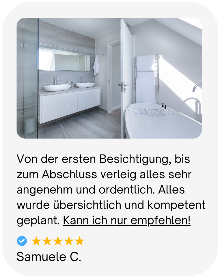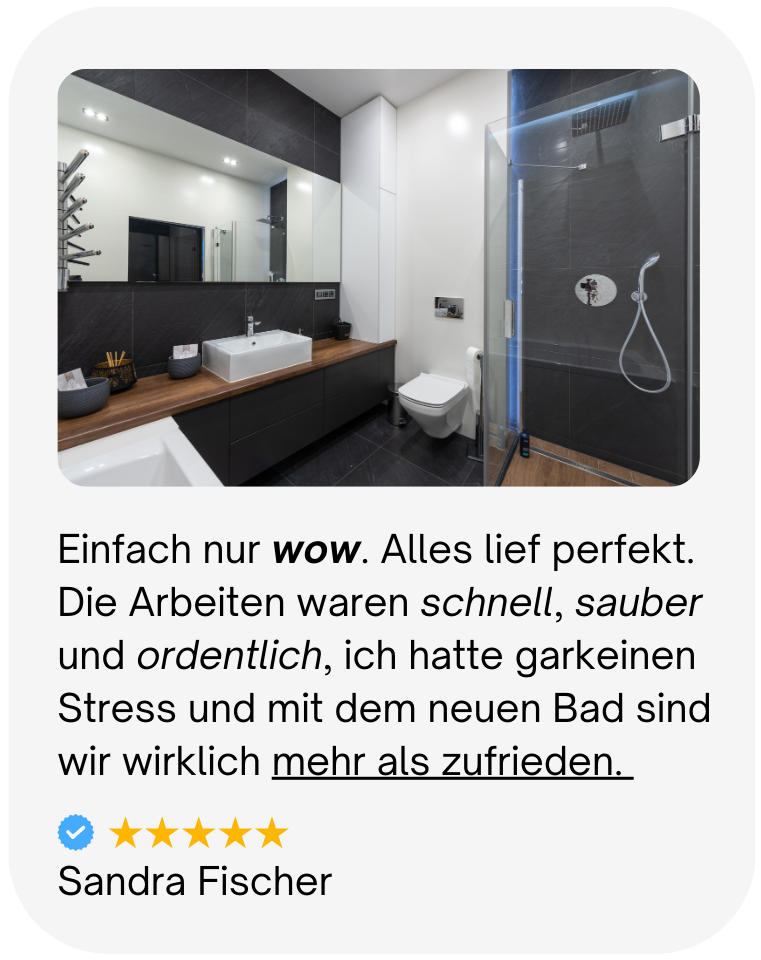 Die beste – wir arbeiten mit hochqualitativen Materialien, um dein Bad langlebig und einzigartig zu machen.